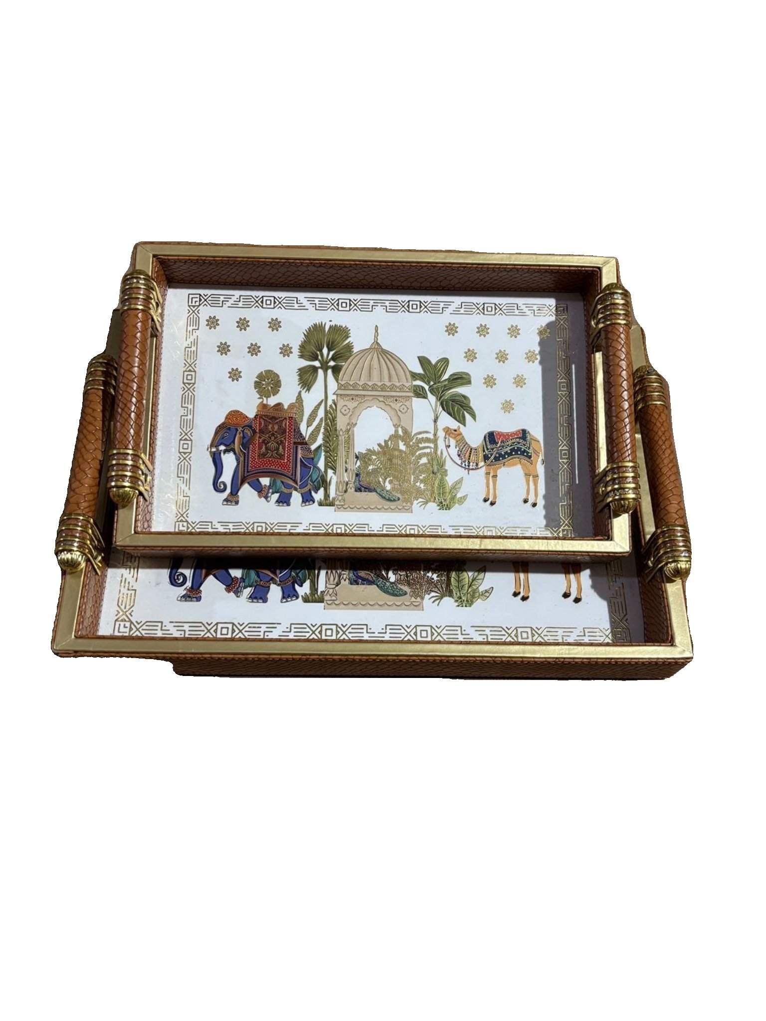 ELEPHANT CAMEL LEATHER 2 TRAYS+TISSUE HOLDER+CUTLERY COMBO