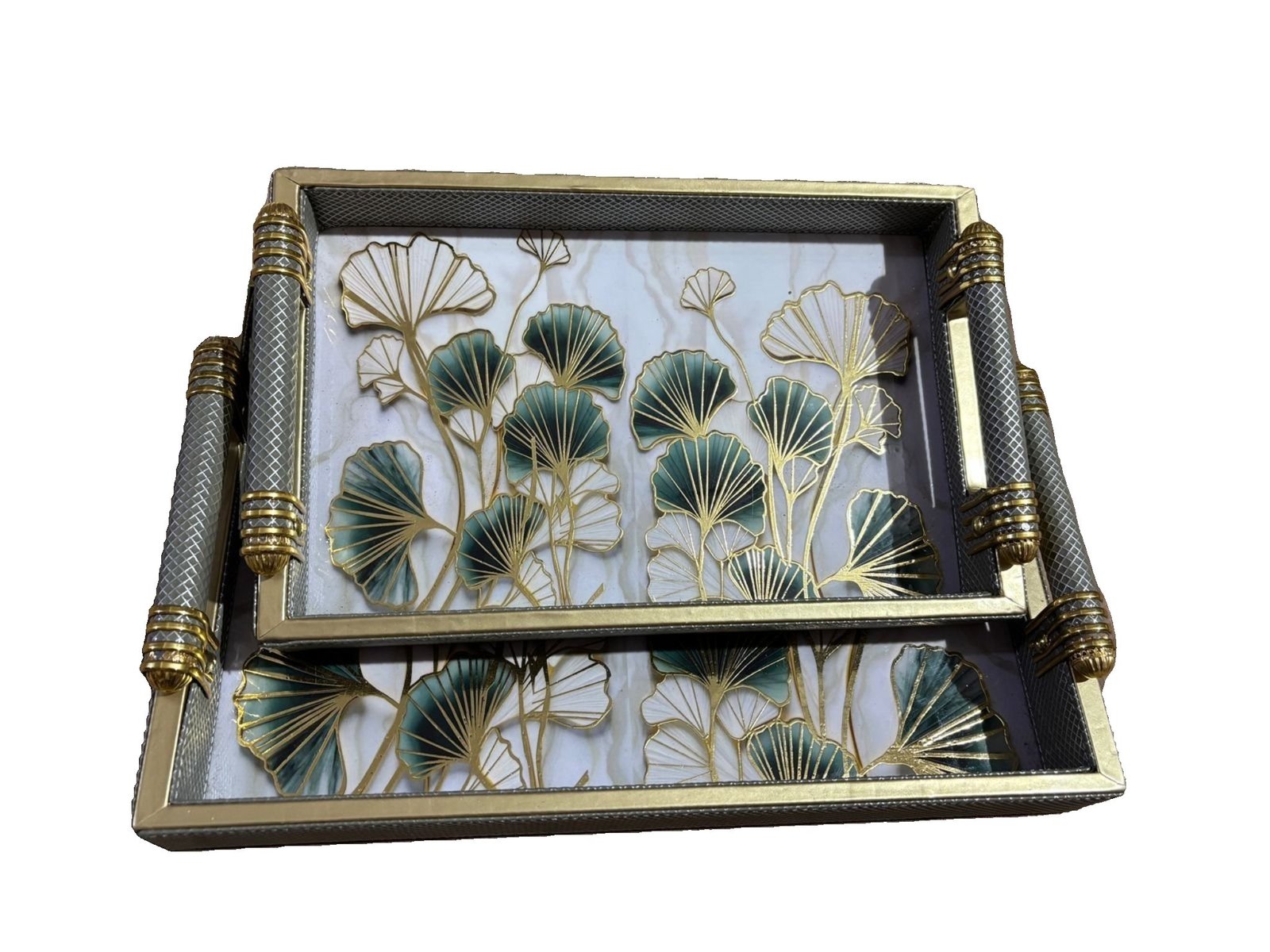 LEATHER MADE TRAYS WITH GOLD FOIL PRINTING MAKE THIS PRODUCT LOOK ATTRACTIVE,GOOD QUALITY LEATHER USED IN MAKING OF THIS PRODUCT