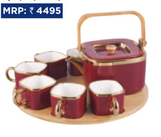 REVOLVING TEA SET MADE UP OF GOOD QUALITY PORCELAIN,COMES WITH 6TEA MUGS , KETTLE AND REVOLVING BAMBOO TRAY